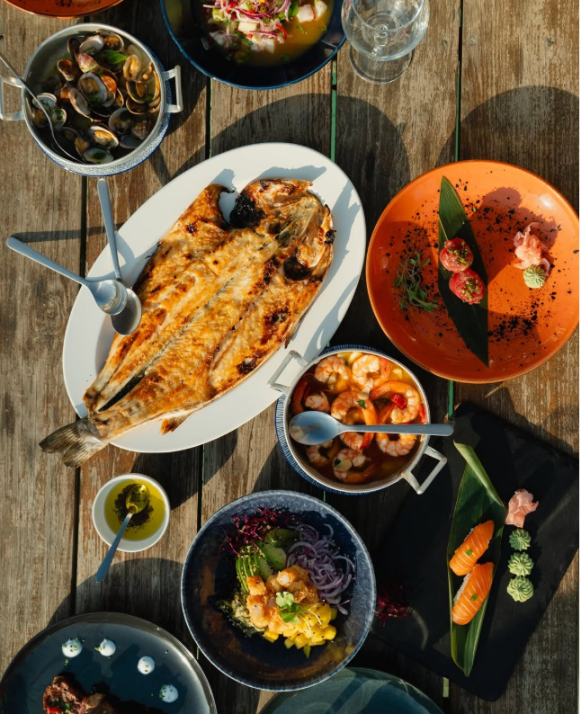 Au coucher du soleil, vous pourrez vous détendre en sirotant des cocktails, tandis que le restaurant s’anime dans une ambiance de club de plage.